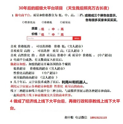 天地苍茫,万物中各教教主共同大联盟创立万教,所有动物植物共同信仰他们,他们去中心化共用一个共同的名字:万教教主。 1:。召唤万灵入体:******** 2: 合万为一:经常默念万教教主,让灵安住于身。每个动物每个植物都可修成万教教主,联通万物,可以让你更健康平安顺利。万物不会害你阻碍你,获得无穷智慧和利益,这样就信仰上天下大同 世界更和平。 3:在一些地方大声念出你的宏伟大志,并付出一些行动。会有一些大的神虫的灵入体 4:人很久不洗头,头上有些小虫子一样的灵。万物头上也会有这样小虫子一样的灵。召唤和念万教教主可以吸引并安住这两种灵。 5:边际学, 上来的灵适合身体的哪里去哪里。 6:我用这个方法好像已经召唤到了龙入体,并有可以让人脸色发红给人赋能的能力,祝你们好运!有需要免费赋能的朋友联系。 广州分公司 |上海办事处 |无锡分部客户留言